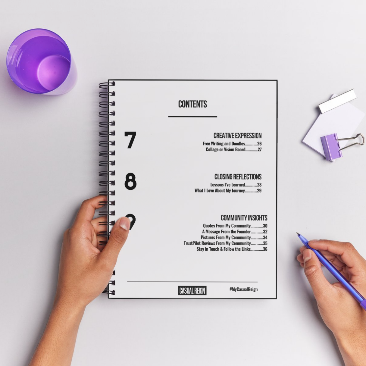 Designed with love by the founder of Casual Reign (a trans-owned brand), this digital journal encourages self-reflection, gratitude, personal growth, and creativity - all while reminding you that you are enough, exactly as you are.